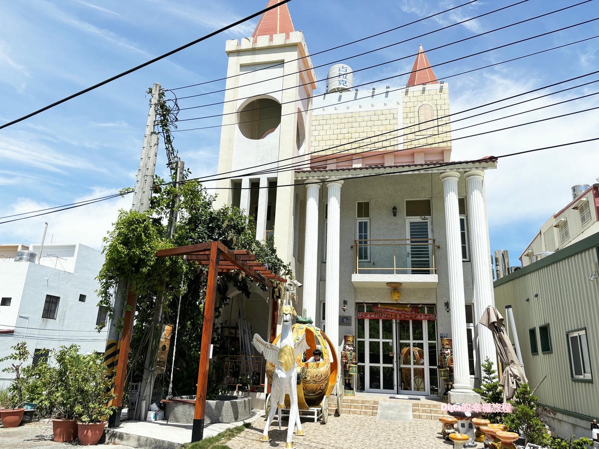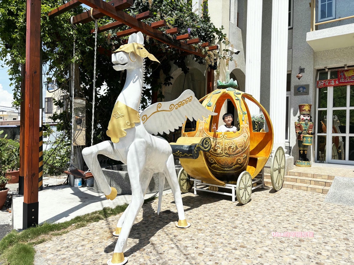 古拉克民宿外觀是城堡造型,在門口前還有南瓜馬車可以拍照。