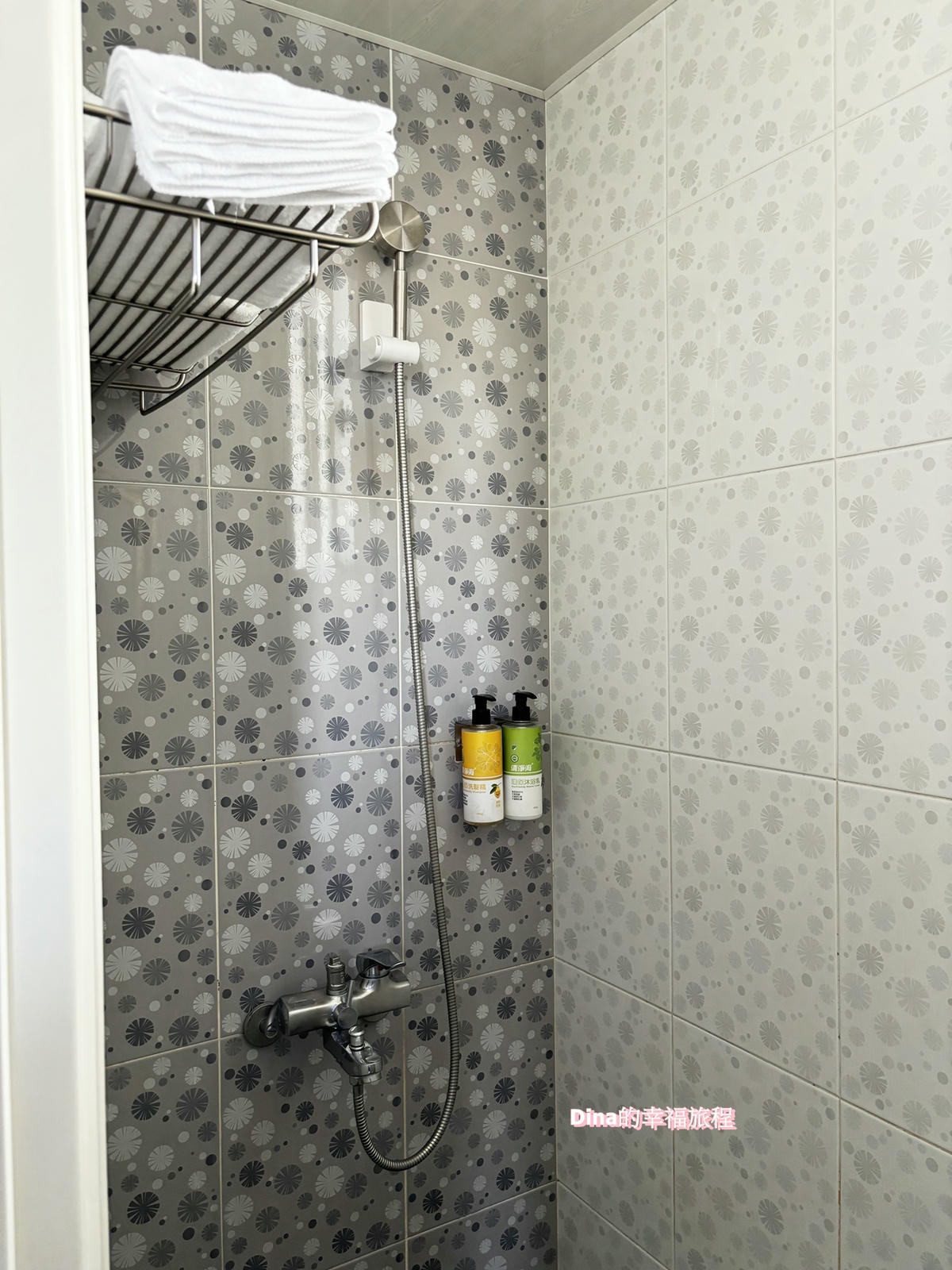 浴室是淋浴的,有提供基本的沐浴乳、洗髮乳和浴巾喔!