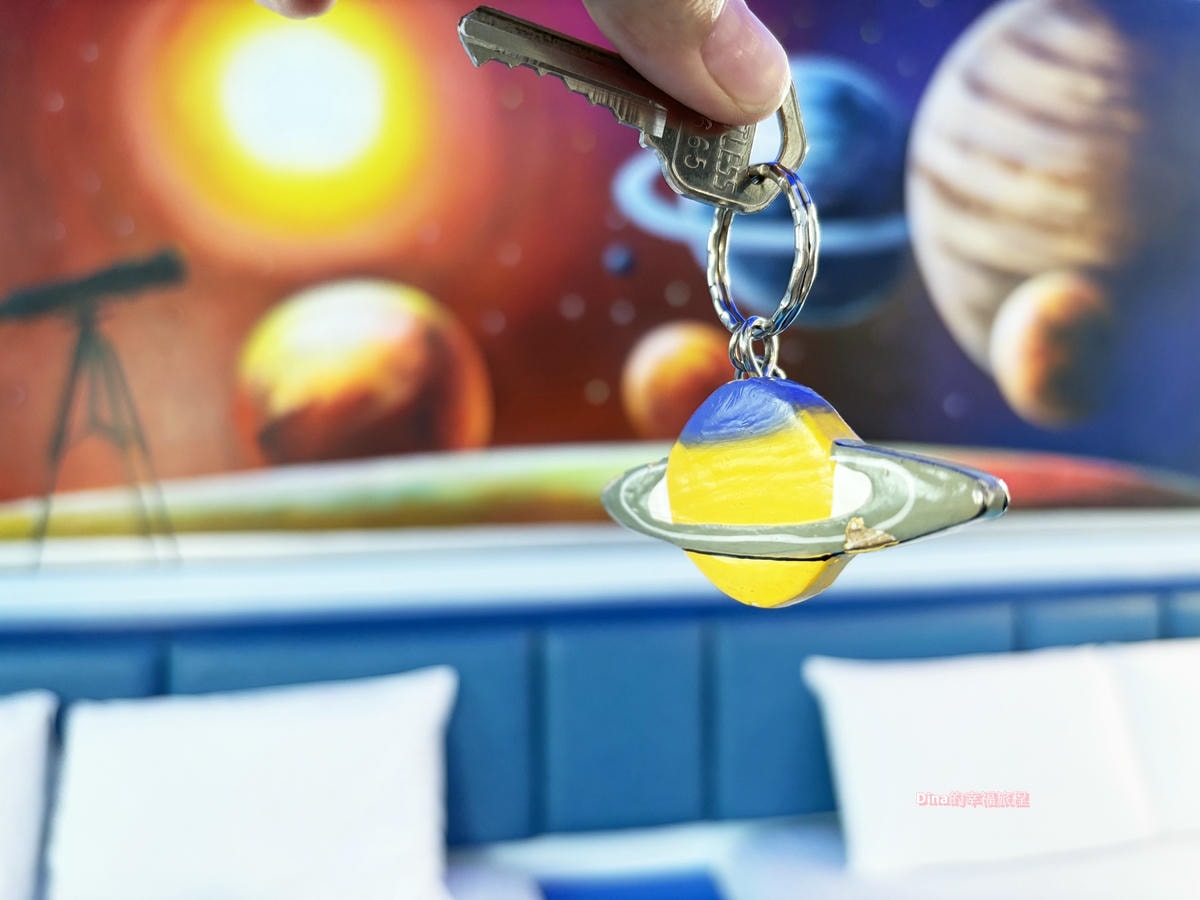我們入住的是太空艙四人房,拿到的房間鑰匙是土星造型。房間鑰匙造型對應主題房型,覺得好用心。