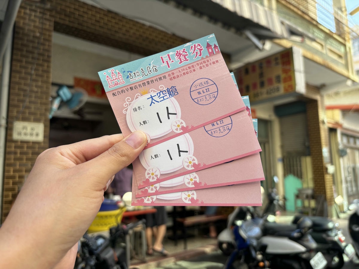 古拉克民宿入住含早餐,會1人給1張50元的早餐卷。民宿合作的早餐店共有3間,其中小琉球知名「阿娟早餐」和古拉克民宿有合作,我們早餐立馬預訂這家。