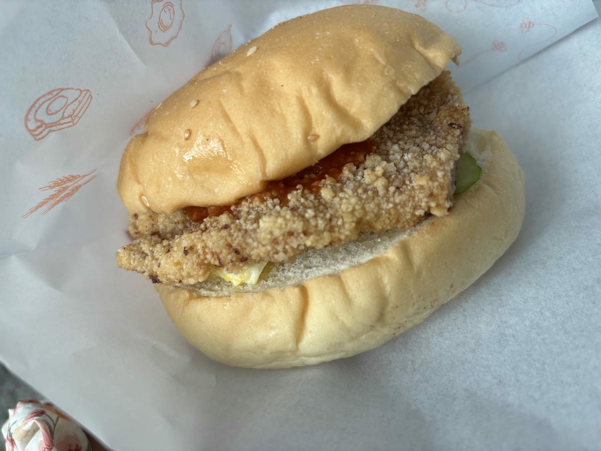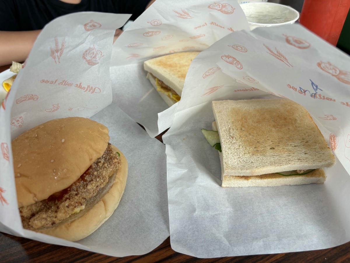 阿娟早餐有名的是炸肉蛋吐司,我們點了炸肉蛋花生吐司和炸肉蛋漢堡。炸肉吐司和漢堡都滿好吃的,只是假日真的要等很久,記得想吃要想預訂唷!