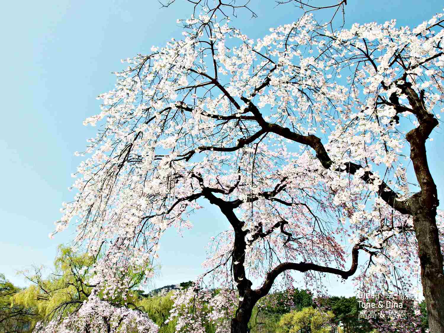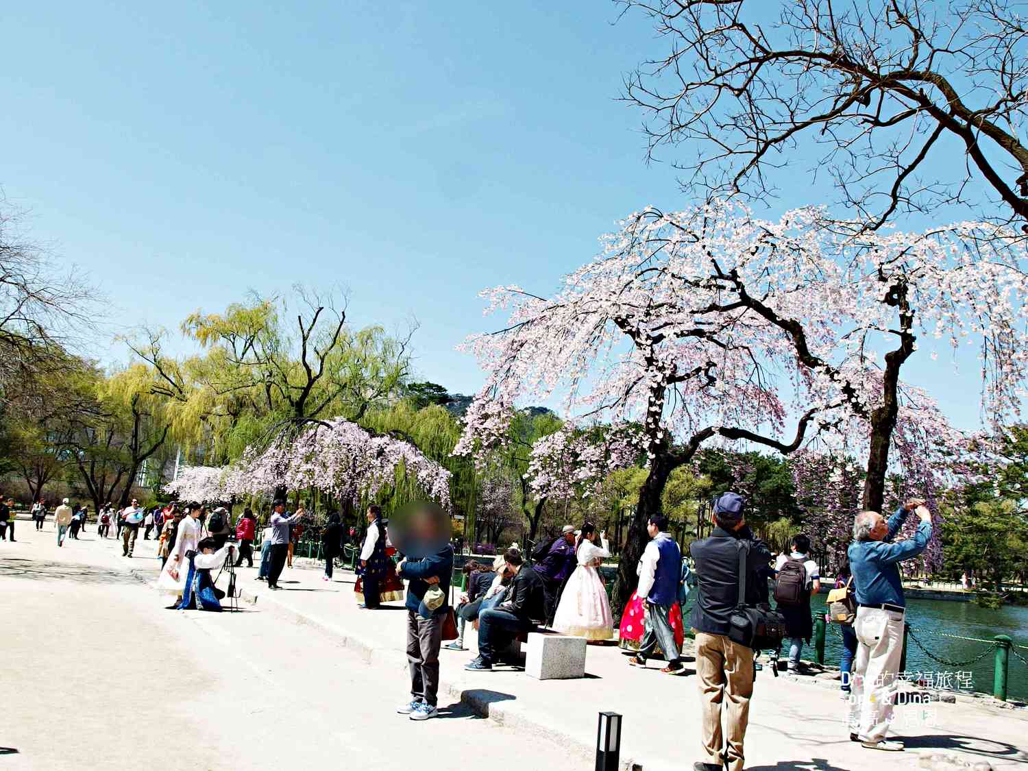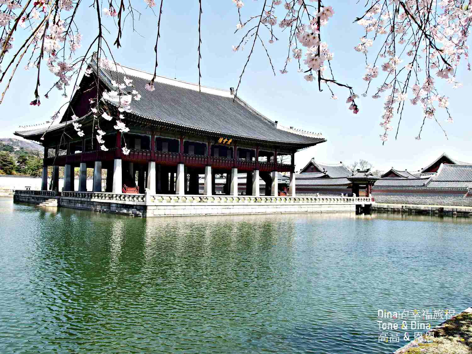 在櫻花和藍天襯托之下,更讓慶會樓增添了不少美,難怪大家都要選擇櫻花季節的時候來韓國玩啊!