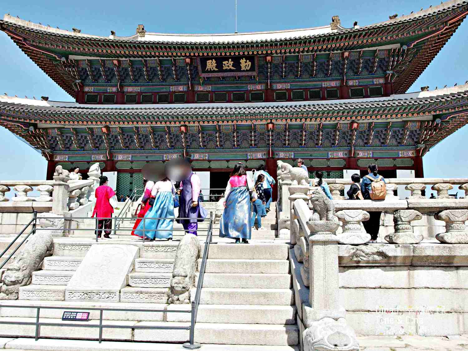 走過廣場,我們直接往正殿-勤政殿走去,在前往勤政殿前會先經過勤政門。若是有看韓劇,對這類建築應該不會陌生,親眼見到有種莫名的感動。